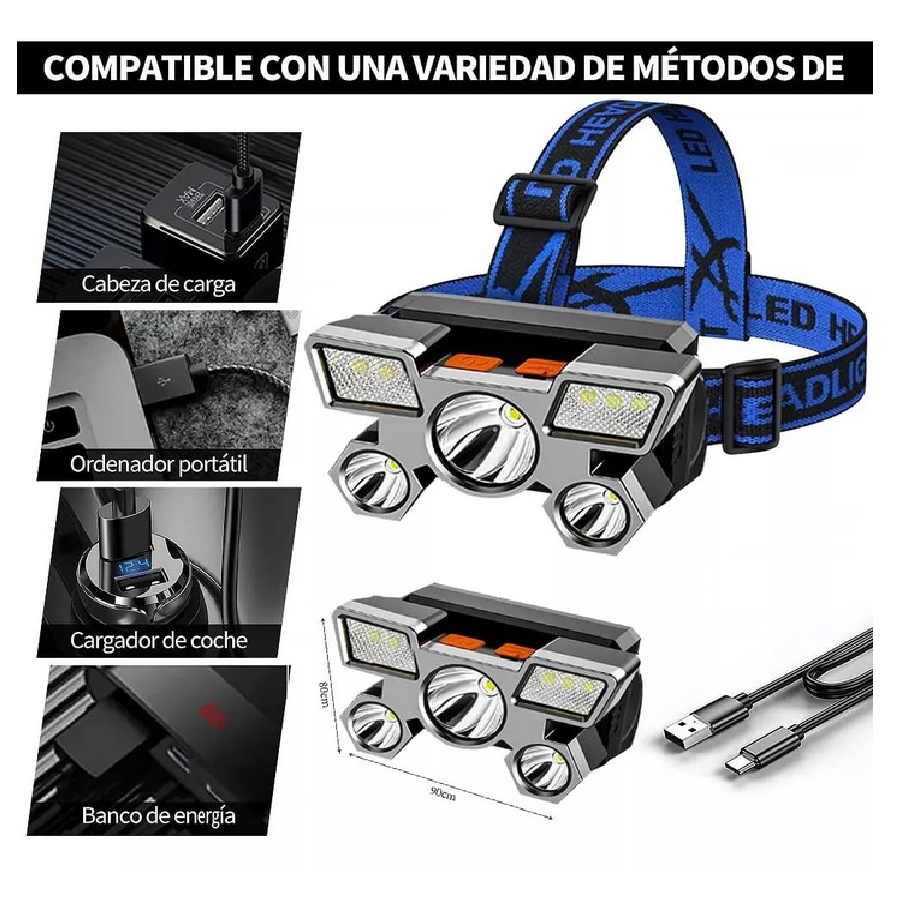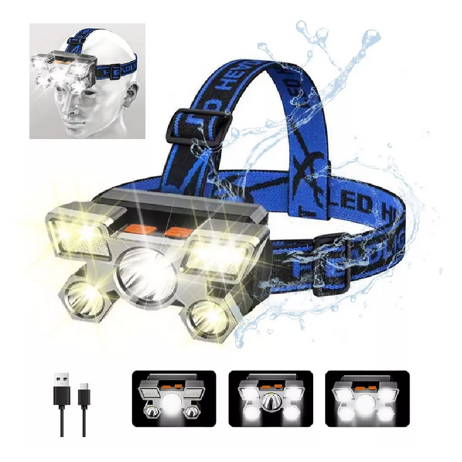 - Equipado con 5 LED de alta potencia para iluminar hasta 50 metros de distancia, permitiéndote visualizar claramente tu entorno y evitando peligros en la oscuridad. Ideal para actividades nocturnas y exploración al aire libre.