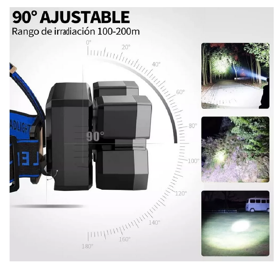 - Rotación de 90 grados para dirigir la luz donde la necesites. Incluye bandas elásticas y almohadillas de alta calidad que garantizan un ajuste seguro y cómodo para todas las formas de cabeza, incluyendo el uso con sombreros.