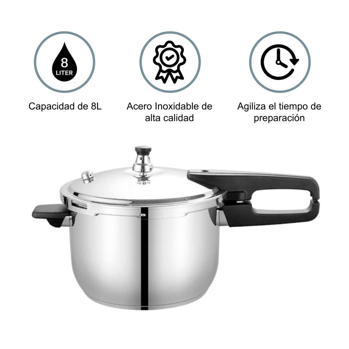 Lleva tu experiencia en la cocina al siguiente nivel con esta olla de acero inoxidable de alta calidad, diseñada para ofrecer durabilidad, eficiencia y seguridad en cada preparación. Su capacidad de 8 litros la hace ideal para cocinar grandes porciones con facilidad.