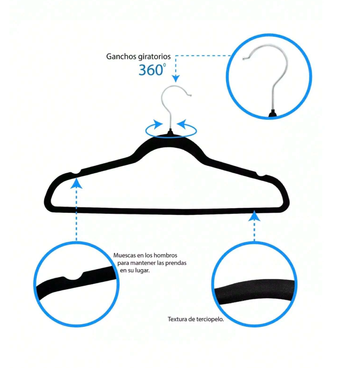 - Textura de Terciopelo: Acabado suave y elegante, que cuida tus prendas más delicadas.